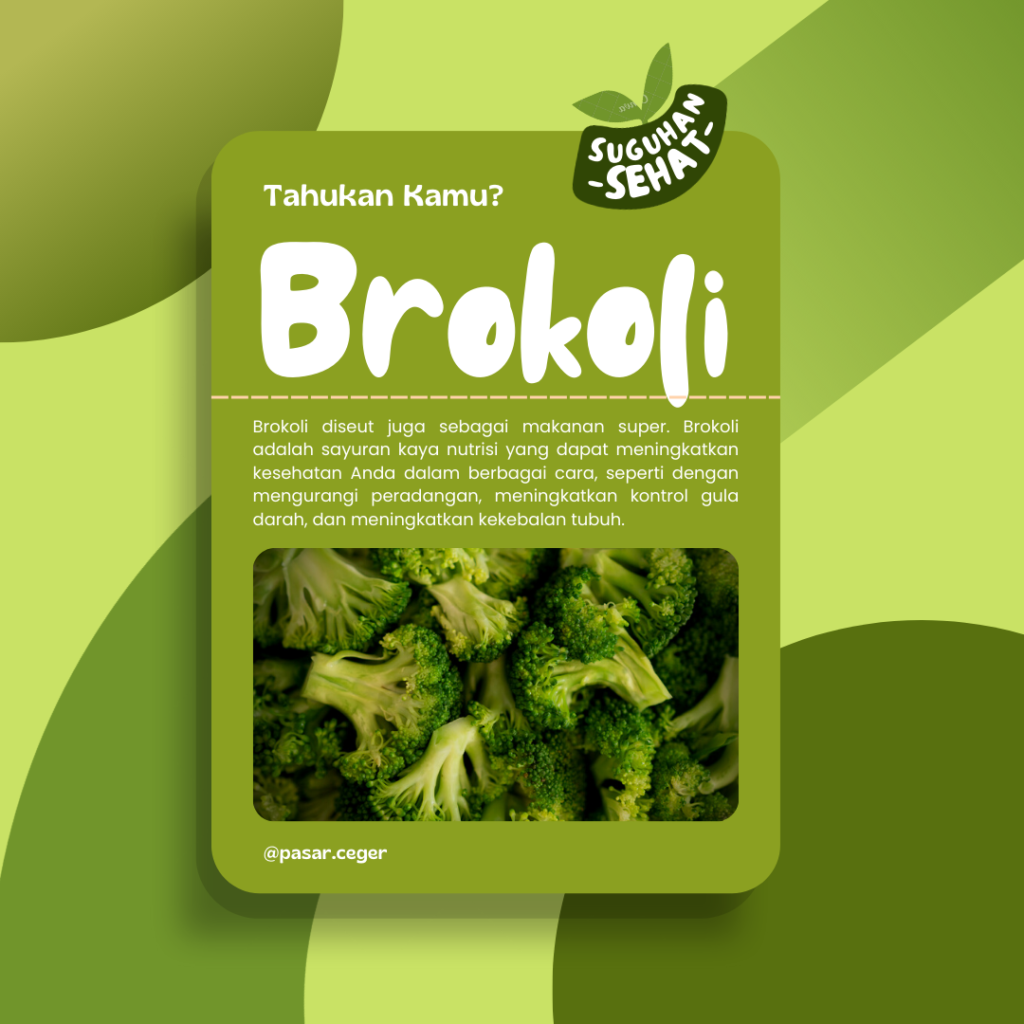 Hallo Pemirsa Pasar Ceger, siapa si yang nggak kenal si hijau keriting menyehatkan ini? ya, betul sekali. Brokoli adalah tanaman yang sering dibudidayakan sebagai sayur. Brokoli adalah kultivar dari spesies yang sama dengan kubis dan kembang kol, yaitu Brassica oleracea. Brokoli berasal dari daerah Laut Tengah dan sudah sejak masa Yunani Kuno dibudidayakan (Wikipedia).